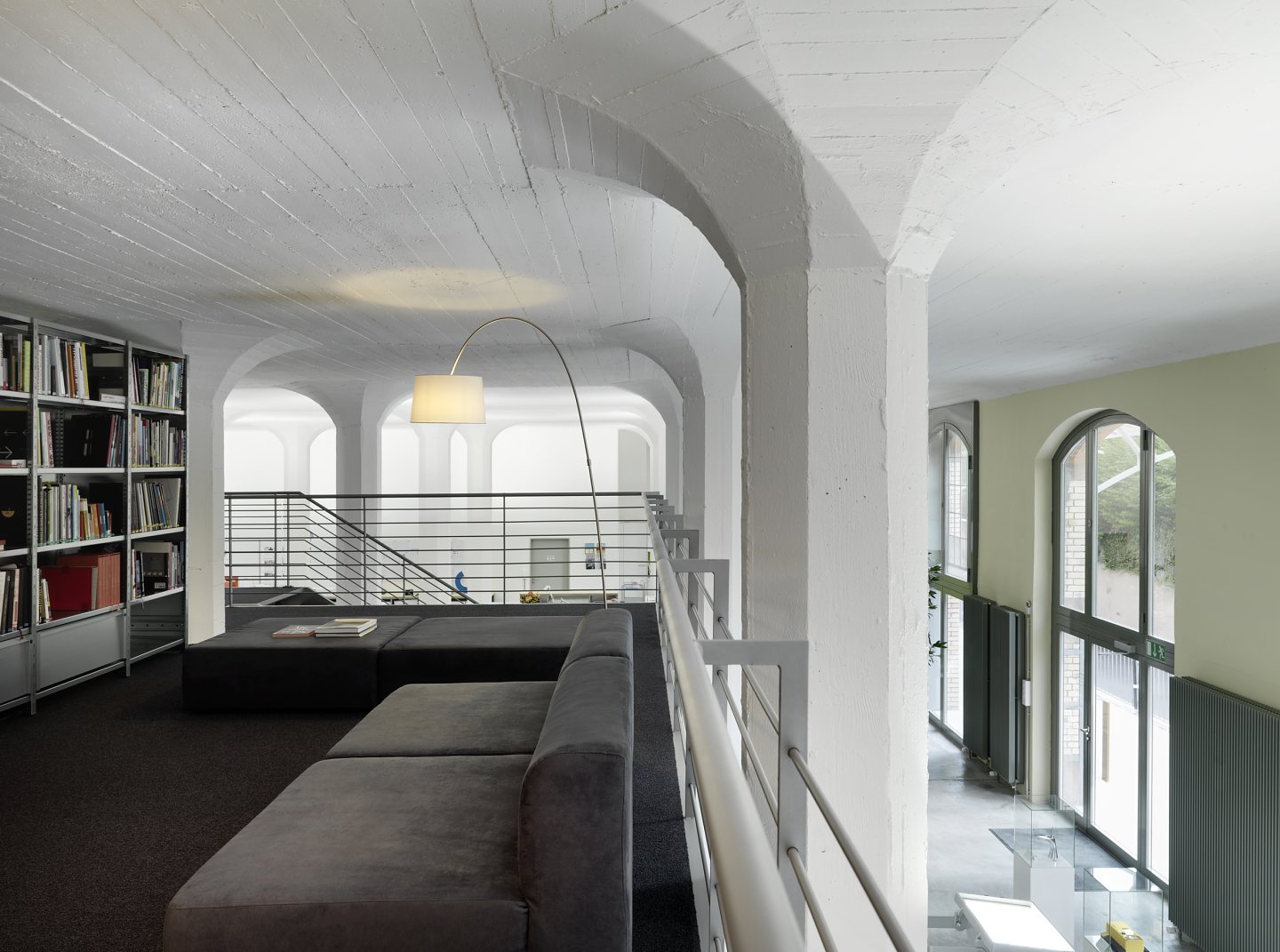 Für den Ausbau der ehemaligen Lagerhallen, deren Architektur von der Industrialisierungsepoche zeugt, wird mit sorgfältigen, minimal erscheinenden Eingriffen eine respektvolle Strategie gewählt. Das umgebaute Erdgeschoss bewahrt die Hallenstruktur mit den Stützen und Pilzdecken, die Fenster aus der Entstehungszeit und die innere Klinkerfassade vollumfänglich.