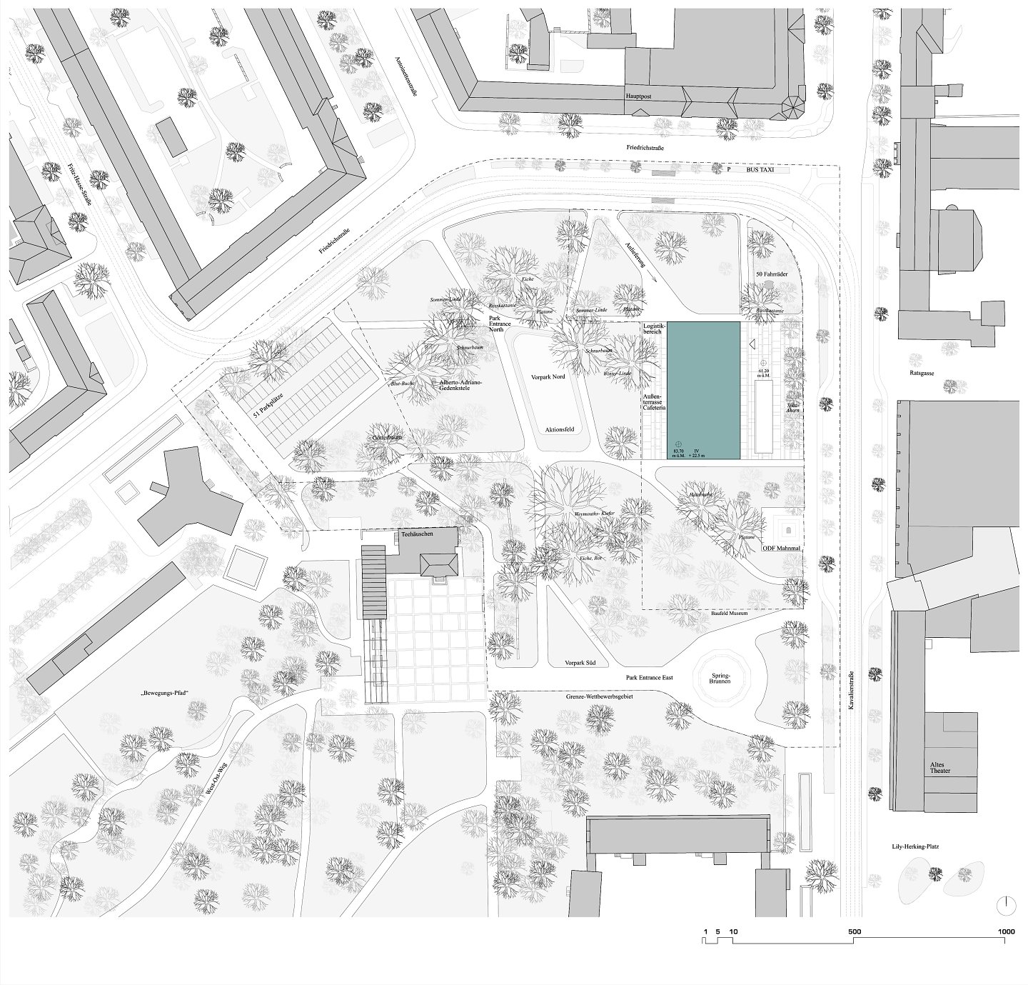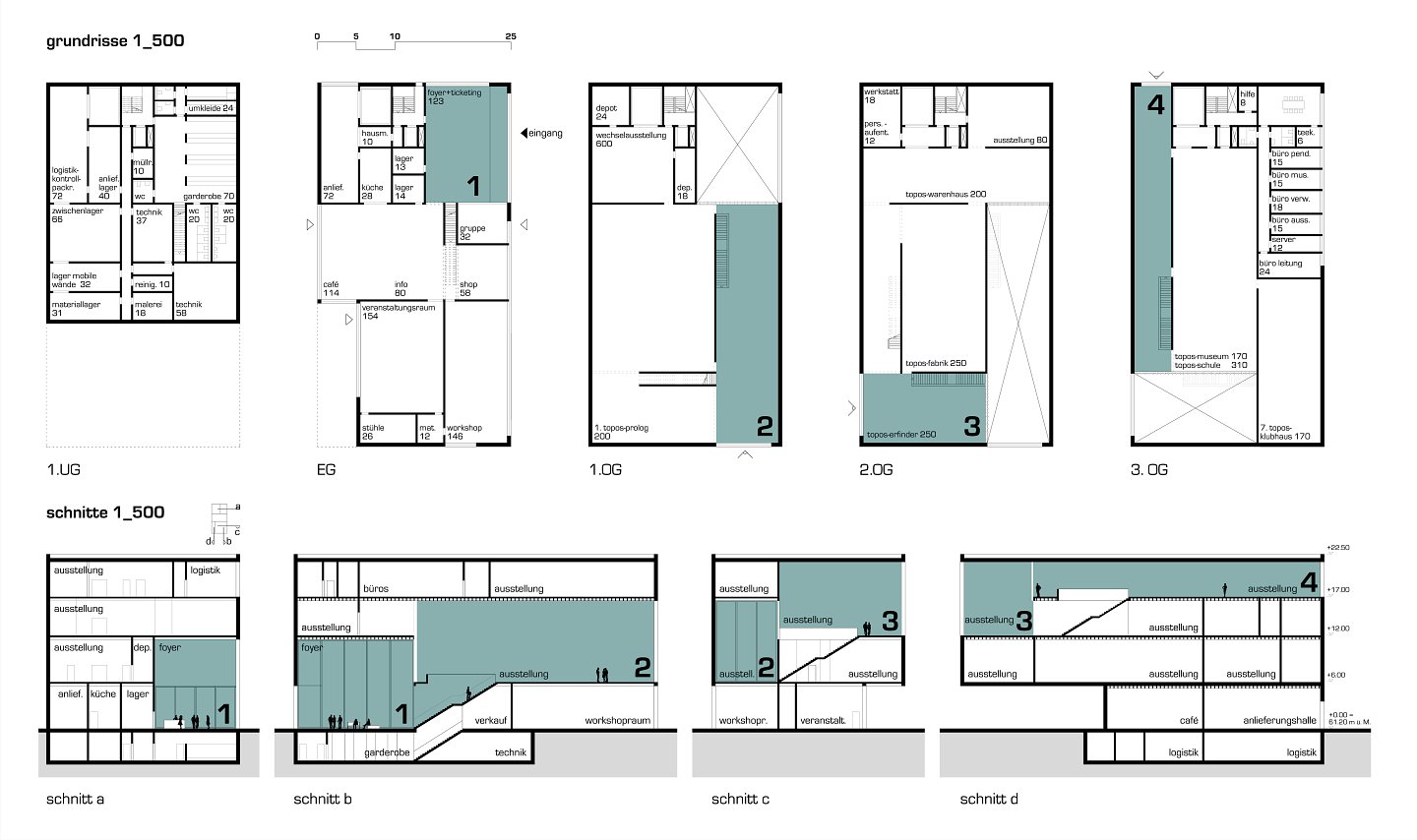 raumprogramm lobby, restaurant, ausstellungsräume, büros