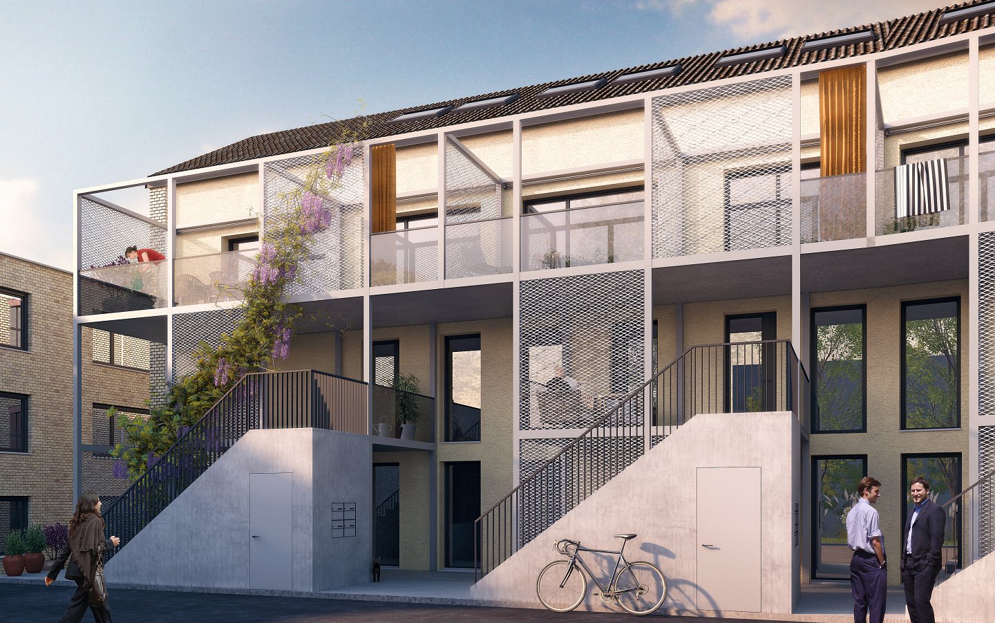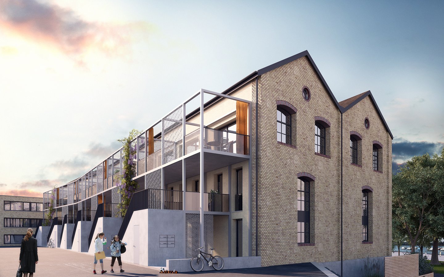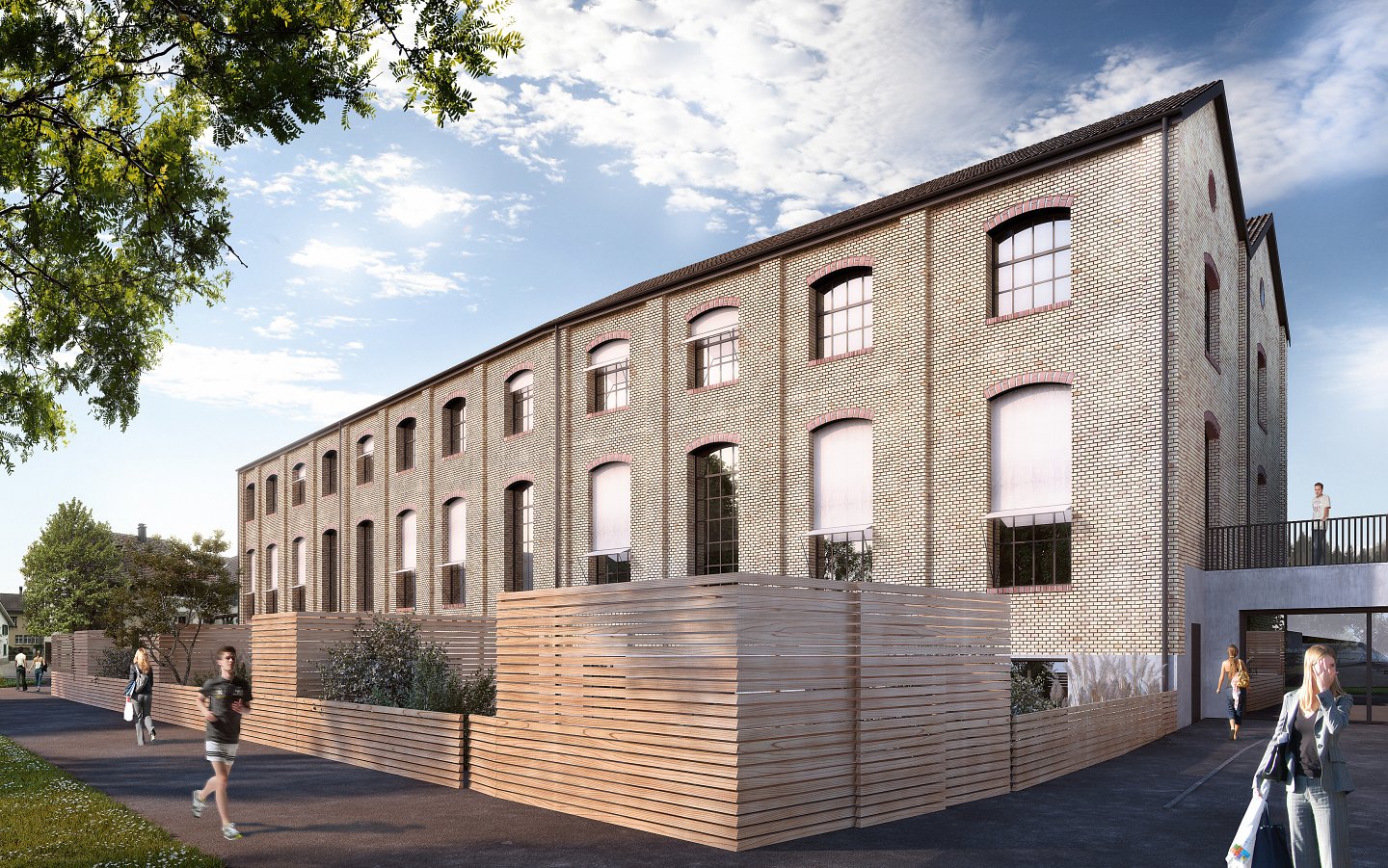 Die Architektur des Umbauprojekts der ehemaligen Fabrik G18 am Pfäffikersee, reflektiert den Charakter des Bestandes und interpretiert wesentliche, gestalterische Merkmale in zurückhaltender, respektvoller und zeitgemässer Weise. Auf der einen Seite wird die denkmalgeschützte Fassade aus beigem Backstein und den nutzungstypischen, grossen Bogenfenstern sorgfältig erhalten, auf der anderen Seite entsteht eine neue Fassadenschicht mit Eingangszonen und Balkonen.