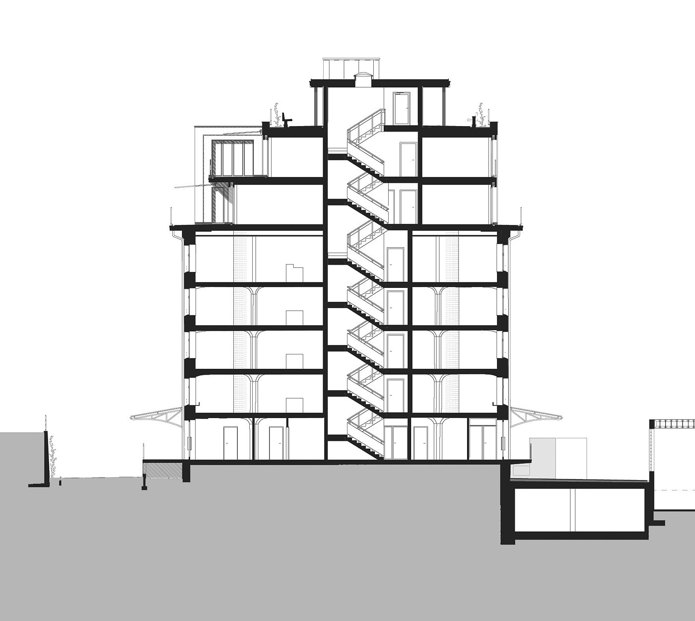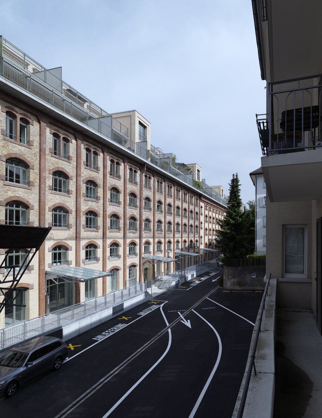 Darüber ersetzt die grösste Dachterrasse Zürichs den fehlenden Umschwung. Weiterbauen ist hier Thema: Alt und Neu gehen eine Verbindung ein.