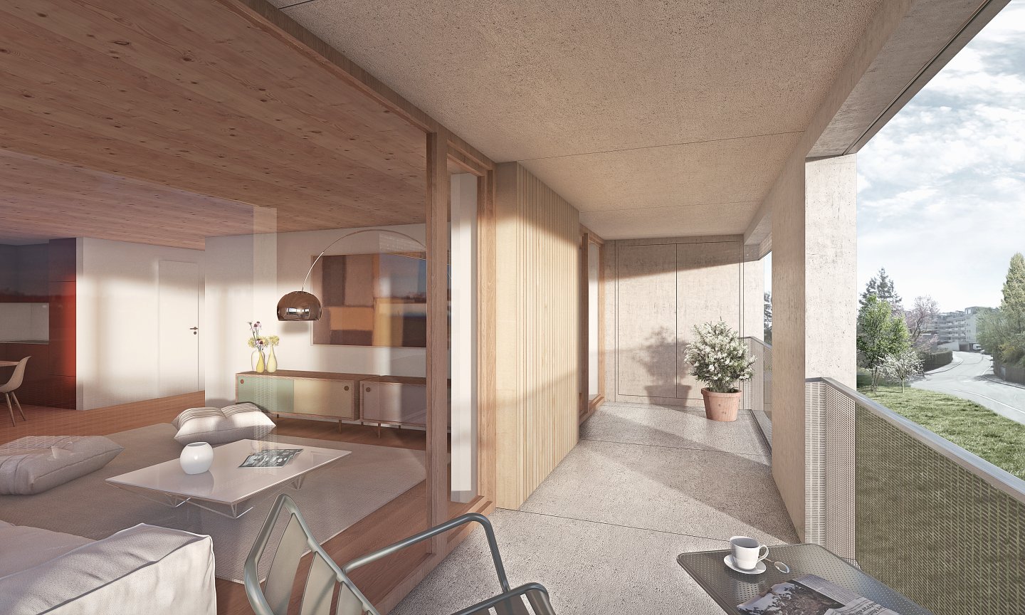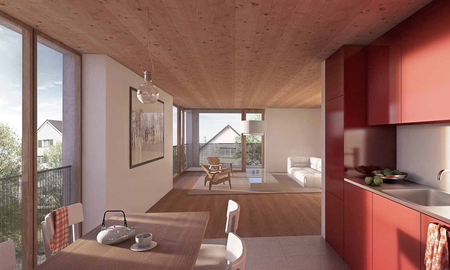Der Neubau des Mehrfamilienhauses ist kompakt um einen grosszügigen, inneren Erschliessungsraum organisiert und offeriert 25 wirtschaftliche Genossenschaftswohnungen, welche sich mehrheitlich auch als Alterswohnungen eignen. Im Eingangsgeschoss sind Büroräumlichkeiten mit Aufenthaltsraum Regiebetriebe der Baugenossenschaft und ein Waschsalon angeordnet.