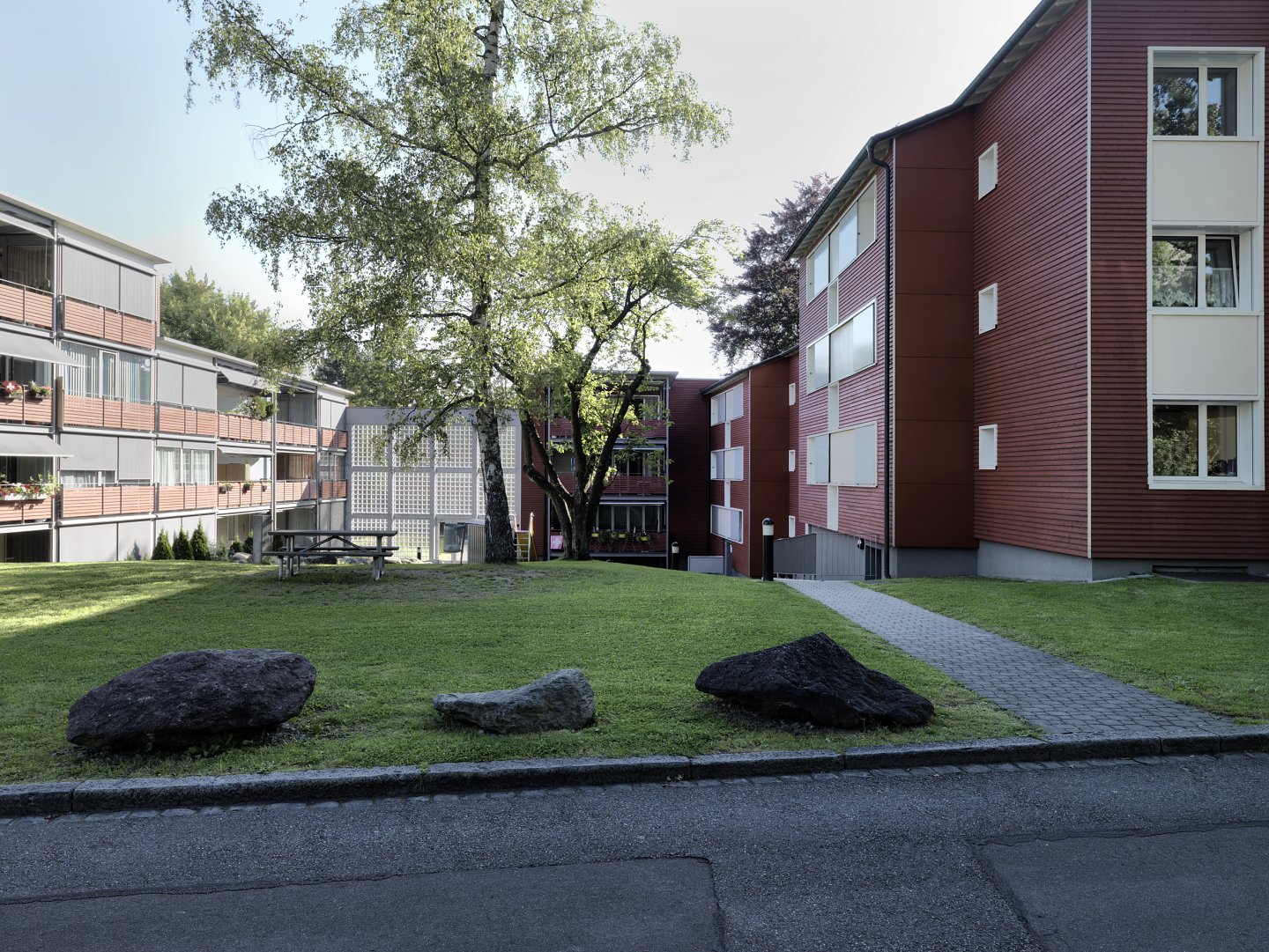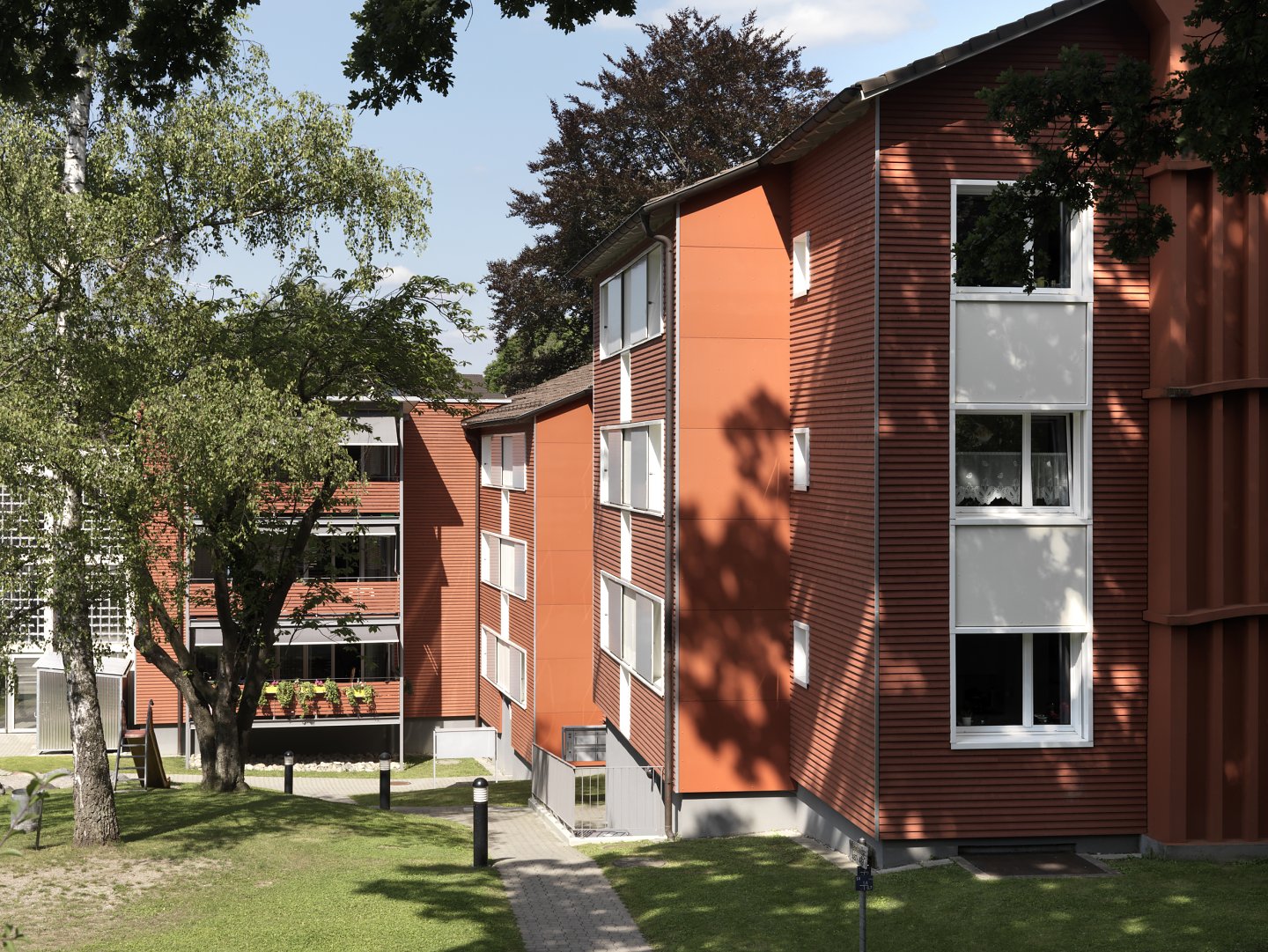 Der umfassende Minergie-Umbau in Zürich verbessert bei 60 Wohnungen der Baugenossenschaft Waidmatt durch eine zusätzliche Raumschicht die Wohnverhältnisse nachhaltig. Grosszügige Loggien sind Zimmer für den Sommer. Dank der haushohen, verglasten Lärmschutzwände können nicht nur sie, sondern auch die Gärten zwischen den Häusern wieder genutzt werden.